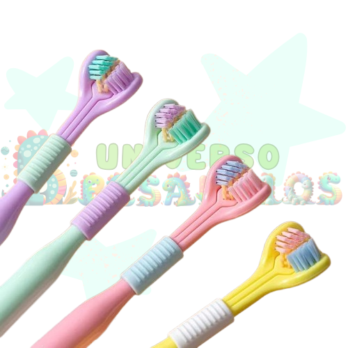 ¡Dale a tu peque el cepillo de dientes más divertido! ✨ Con su diseño 3D de 3 caras, ¡limpiar la placa es pan comido y rápido! Ideal para niños de 1 a 5 años, este cepillo envuelve sus dientes, eliminando la placa mientras se divierten. ¡Incluye raspador de lengua para un aliento fresco! ¡Higiene bucal divertida y efectiva en un solo movimiento! 🎉💖