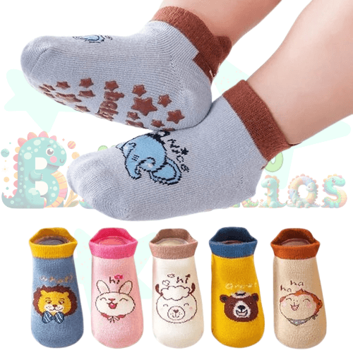 Medias antideslizantes, transpirables y cómodas para niños de 6 meses a 2 años, hechas de 95% algodón, 3% poliamida y 1% elastano. Cuentan con agarres en la suela para evitar resbalones y mantener los pies calientes. Disponibles en 6 colores, son ideales como regalo y son fáciles de lavar.